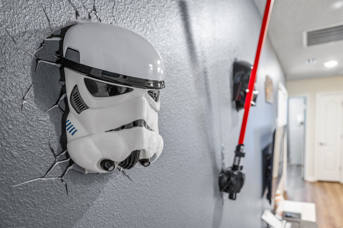 Enjoy a little R & R in the upstairs Loft Area 'Star Wars' Game Room with a NEW DOUBLE CHAISE LOUNGE SOFA, Retro Game Arcade, Foosball Table and a Flat Screen TV. Also upstairs, you will find the Laundry Area w/Full Size Washer & Dryer for your convenience.